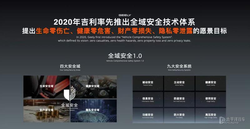与此同期,祥瑞同步发布全域安全2.0体系,将安全范围从传统的车辆碰撞扩张至九大系统,涵盖驾驶安全、主动安全、被迫安全、挽回安全、健康安全、新动力安全、防盗安全、数字安全及公域安全,具体可分为四大中枢域。